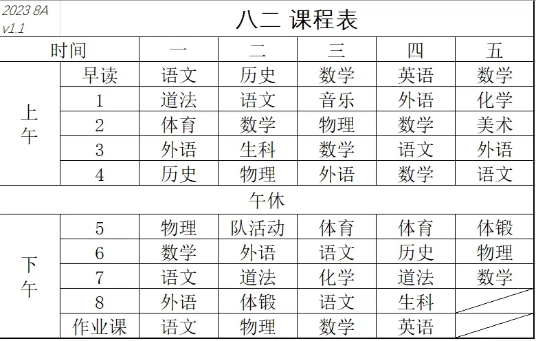 课程表